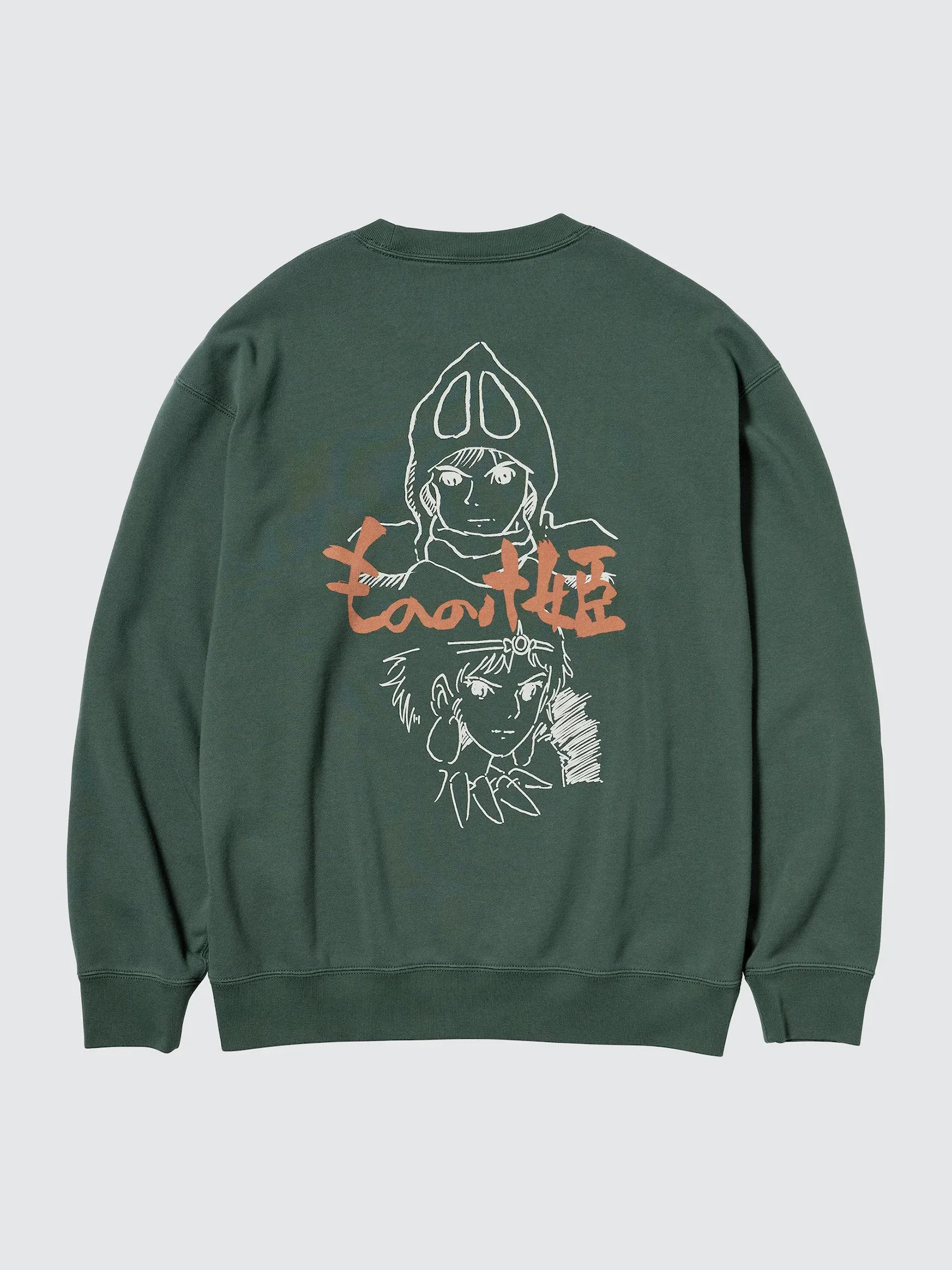 Princess Mononoke: Sweatshirt ini memiliki desain dua sisi, dengan gambar karakter San di bagian depan dan Ashitaka di bagian belakang, lengkap dengan judul film dalam huruf kanji Jepang.